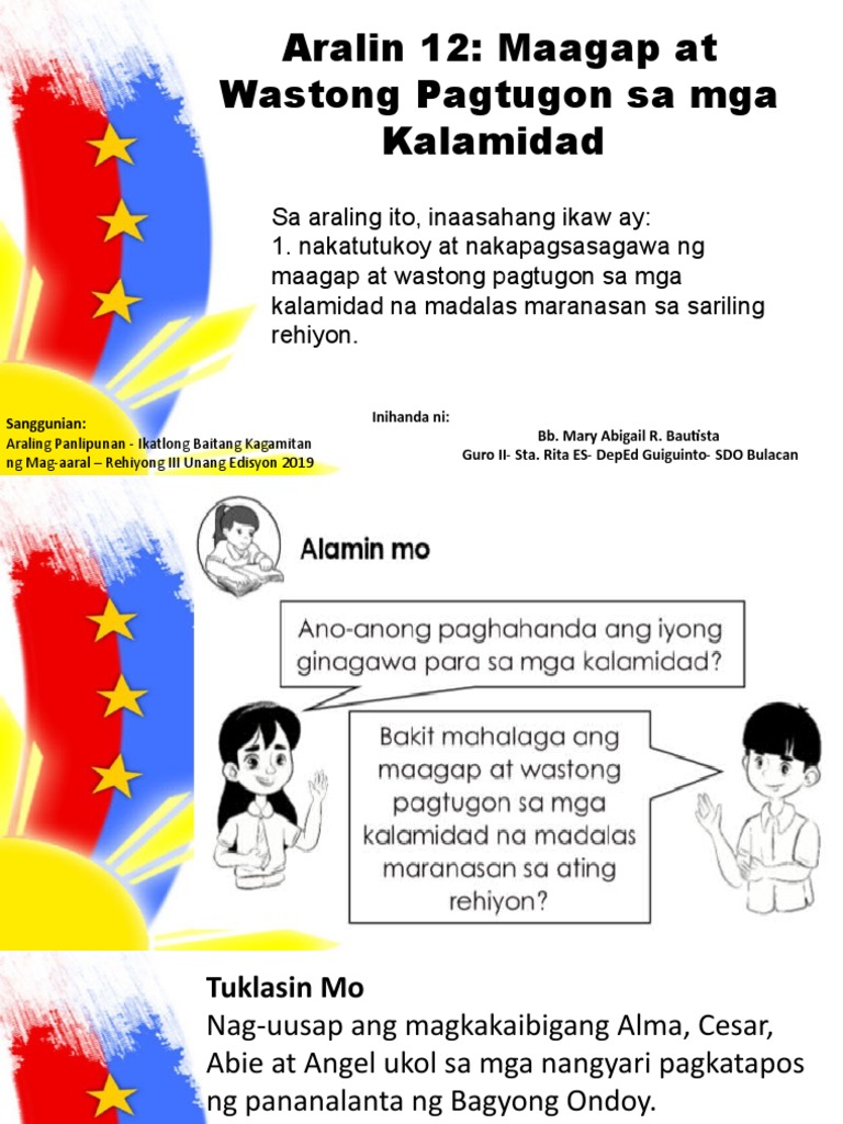 Grade 3 Ap Aralin 12 Maagap At Wastong Pagtugon Sa Mga Kalamidad Pdf