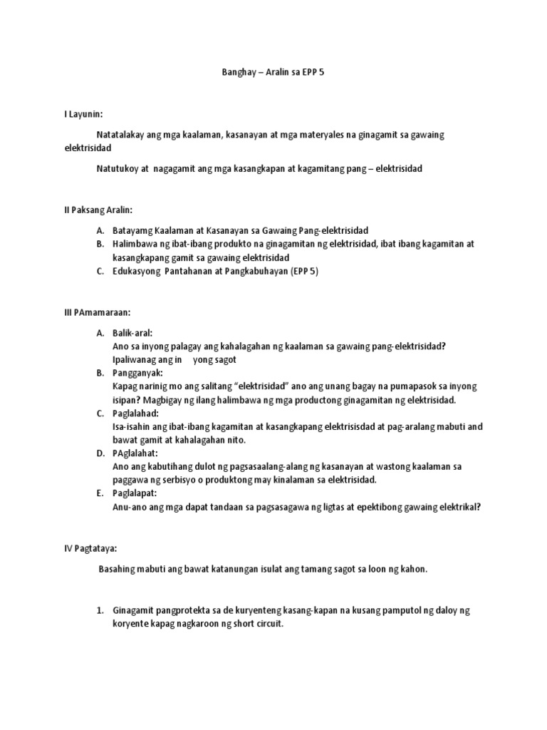 Dito makakamit ng mga mag-aaral ang batayang kaalaman at kasanayan tungkol sa elektrisidad mga kaukulang pag-iingat at mga pangkaligtasang gawi upang makaiwas sa sakuna. Halina at alamin natinMga kadaks salamat po sa supporta at. Ipasagot sa mga mag- aaral ang mga sumusunod na tanong.